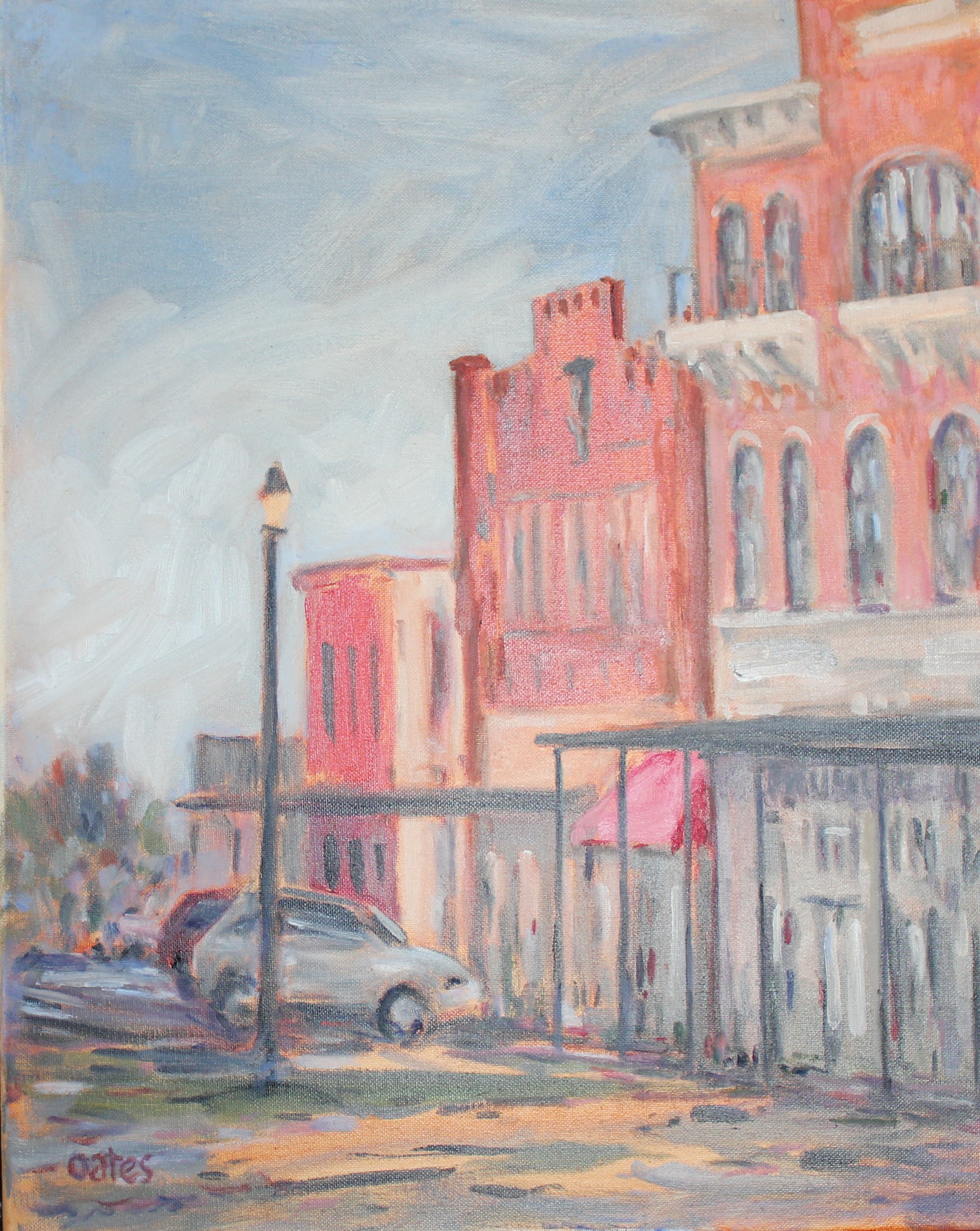 Modern impressionist view of charming Weatherford architecture.